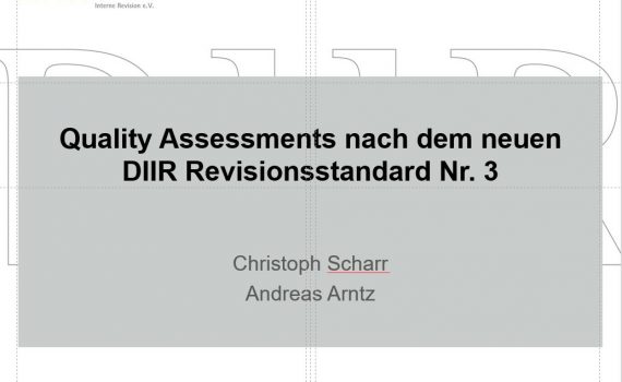 Andreas Arntz (Horizon5) stellt mit Christoph Scharr im Rahmen eines DIIR-Webinars wesentliche Aspekte eines QA nach dem neuen Revisionsstandard des DIIR und des IDW vor: Termine: 24. 3. 2017 Informationen und Anmeldung finden Sie hier.